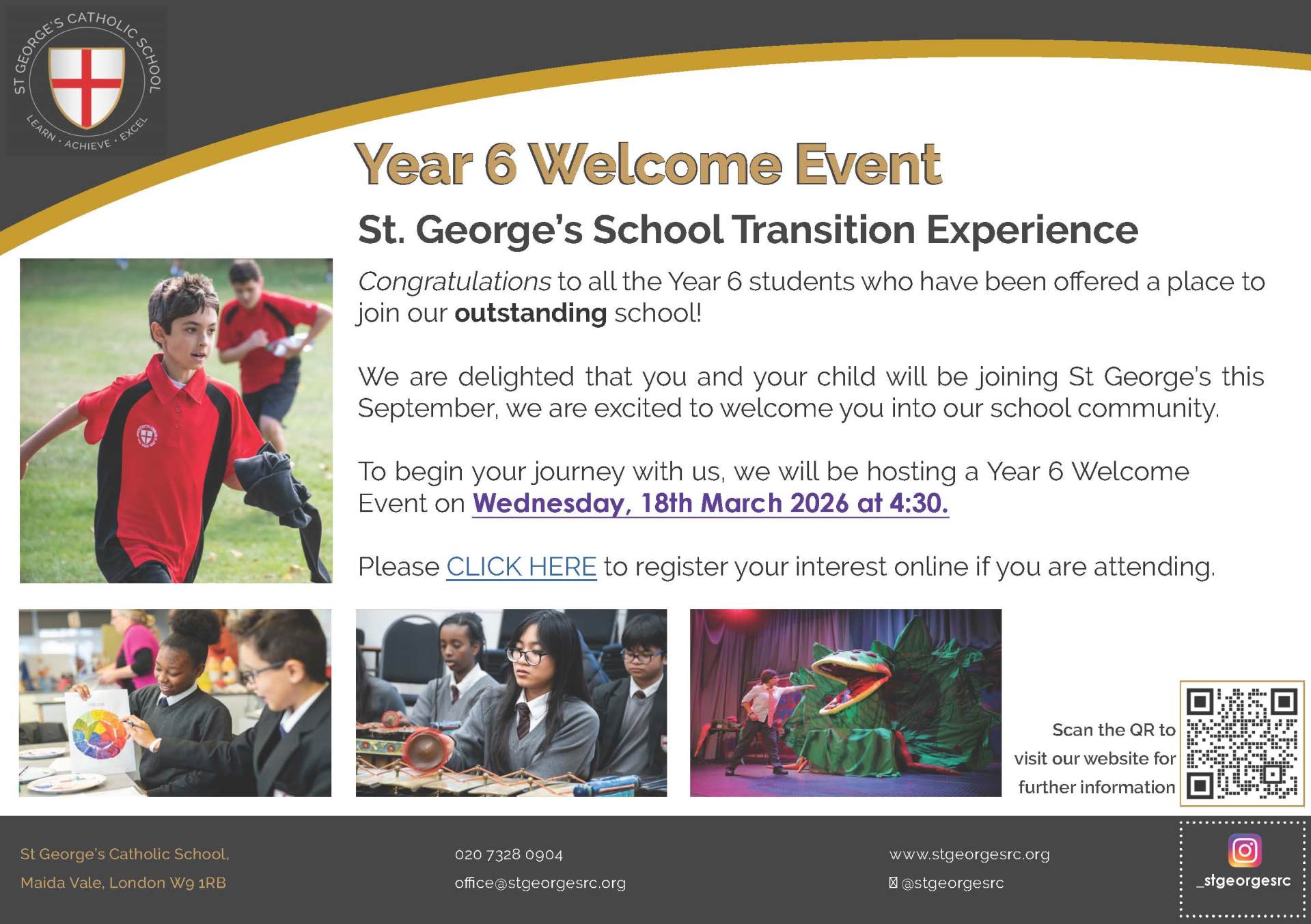 St. George's School is an independent Academy School and part of the Cardinal Hume Academies Trust. We are an ordered and exciting Catholic learning community achieving the highest standards for boys and girls aged between eleven and nineteen.